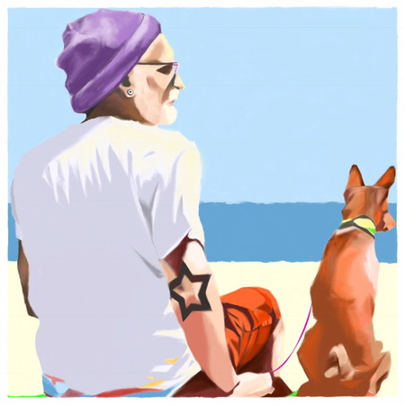 digital painting of an older dude with a cute dog and a cool hat