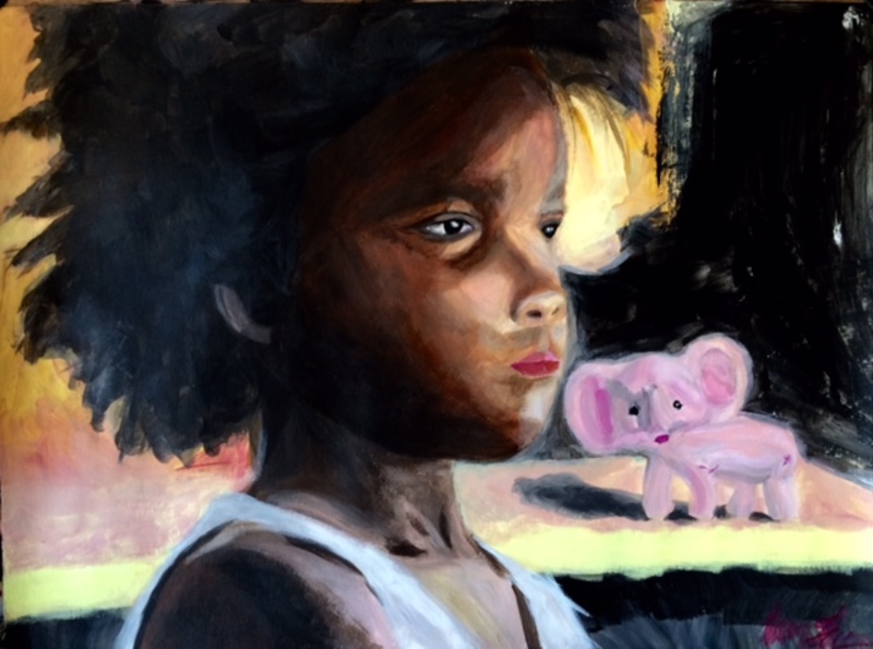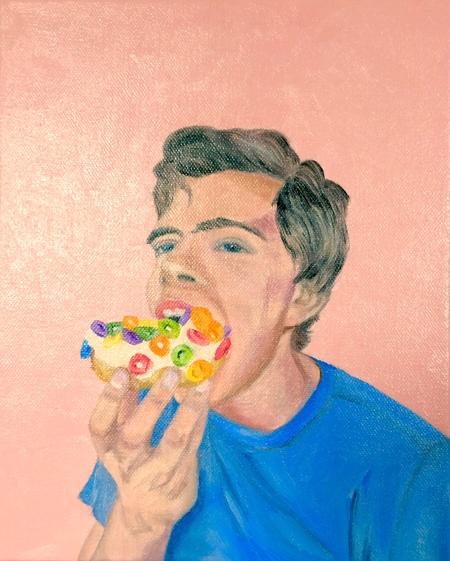 Boy eats donut acrylic painting Colorado 2015