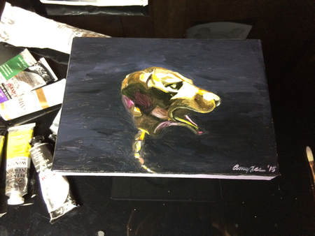 dog small oil painting with gold paint experiment, May 2015