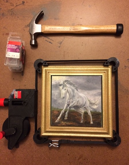 small unicorn painting with gold sprayed frame