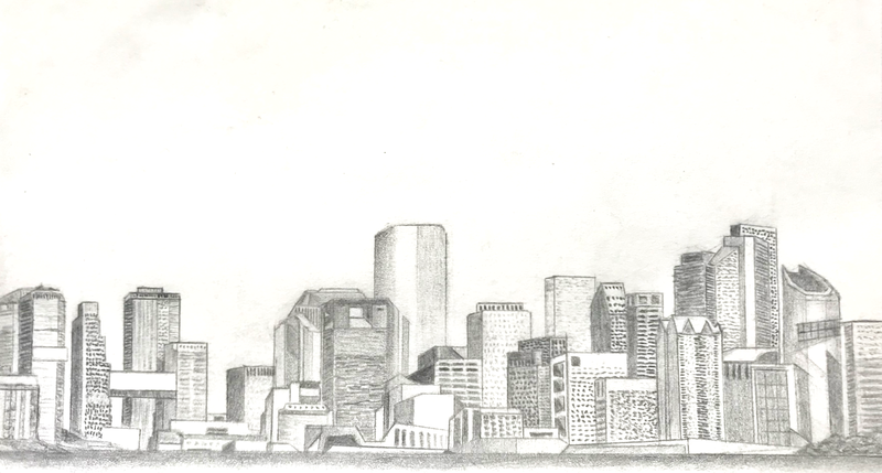 small drawing of the Houston TX downtown skyline